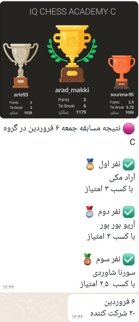 محمد حسام بیگانی نفر برتر مسابقه جام رمضان باشگاه ذهن برتر شد